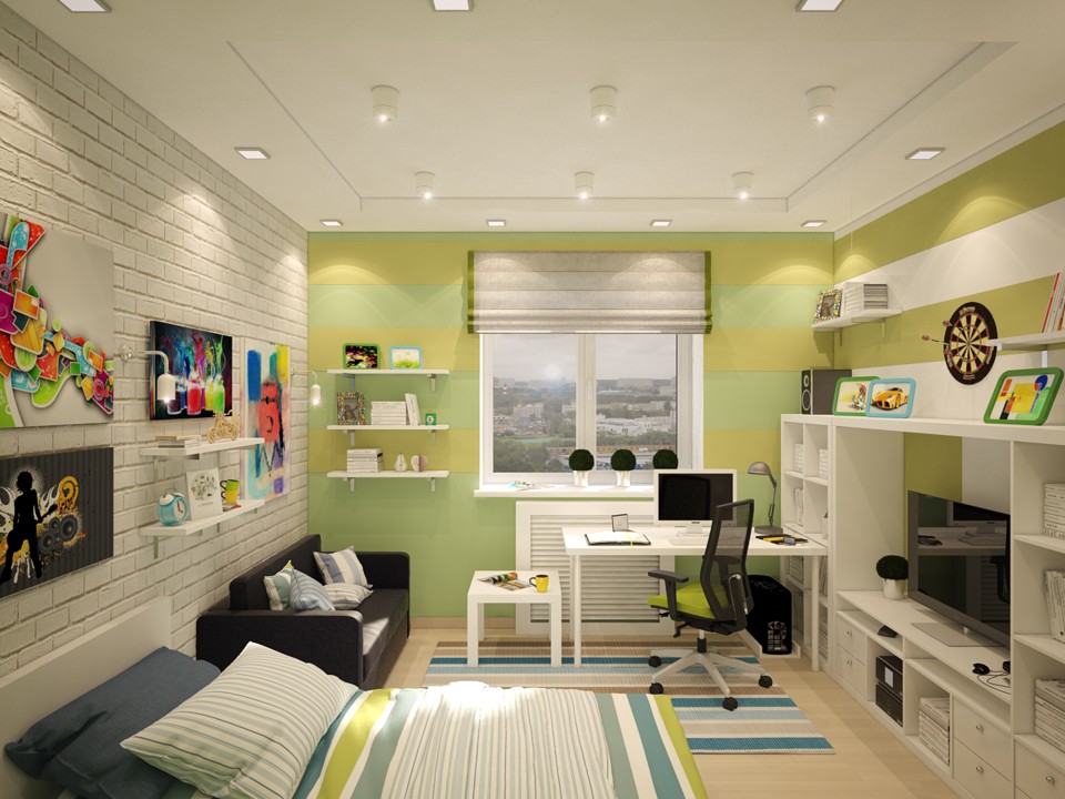 Вариант размещения мебели, электроприборов, деталей интерьера для комнат, квартир, офисов, торговых залов.